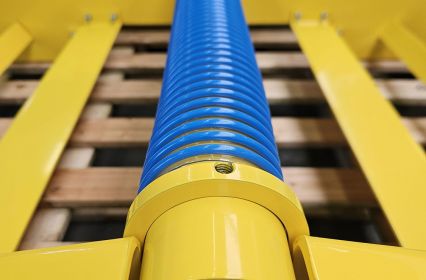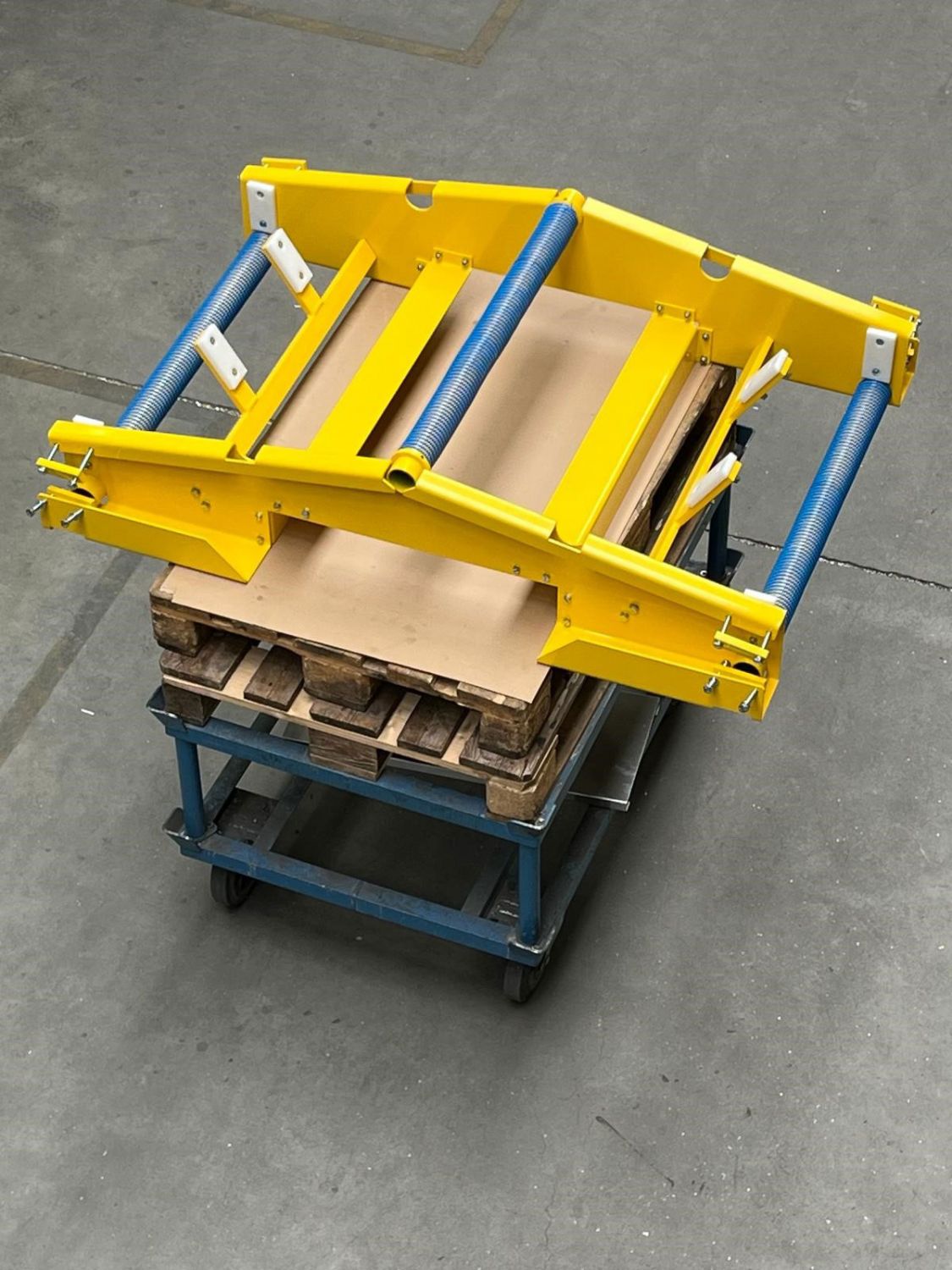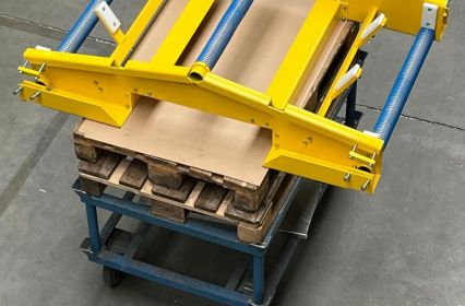 In einem fröhlichen Farbton liefern wir regelmäßig Transport-Gestelle aus Stahl an unsere Kunden aus.
